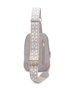 Meet our chic Sling Backpack, crafted from smooth vegan leather and adorned with an intricate embroidered strap design. The front slip pocket provides quick access to essentials, while the fabric-lined interior boasts a zip pocket and two separate compartments. Perfect for the stylish, on-the-go woman who values both elegance and functionality.